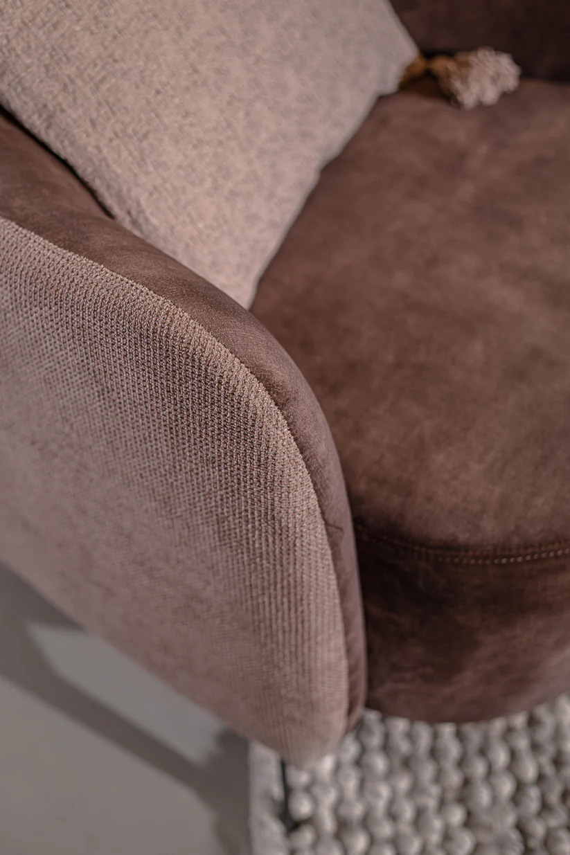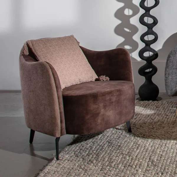 כורסא מדהימה בעיצוב טרנדי ופרופיל מעוגל על בסיס רגלי עץ נסתרות.