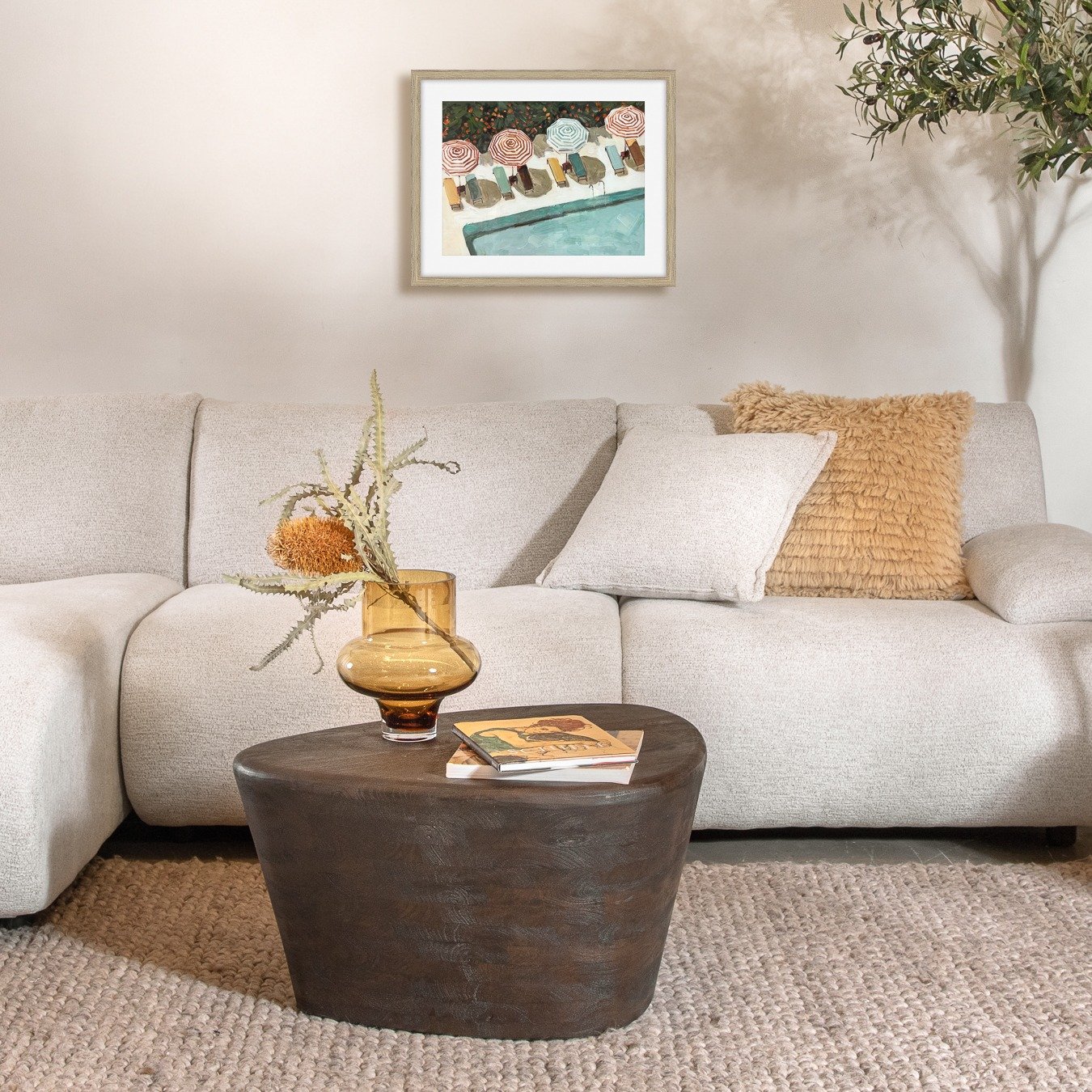 סט תמונות חוף במסגרת עץ טבעי וזכוכית.