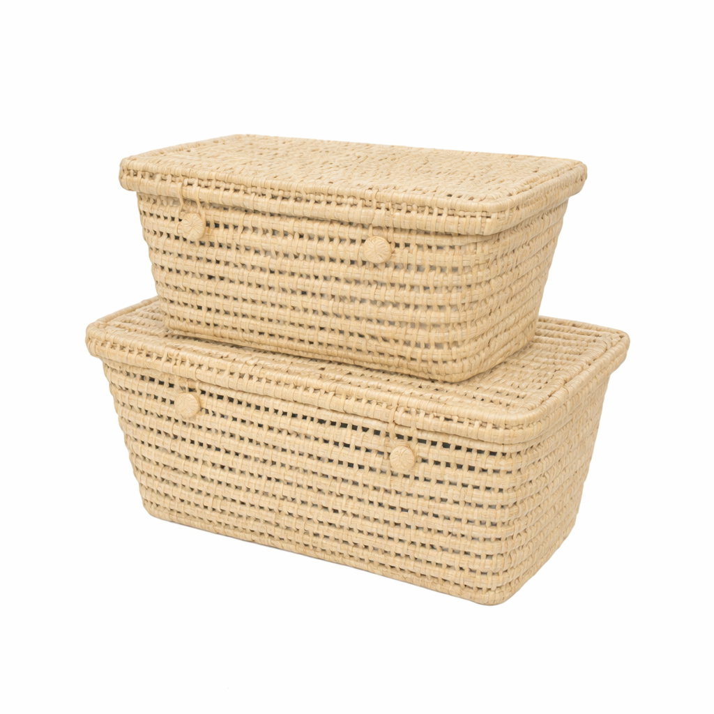ארגז אחסון ראטן טבעי בעיצוב כפרי קלאסי מיוצר בעבודת יד מקצועית.