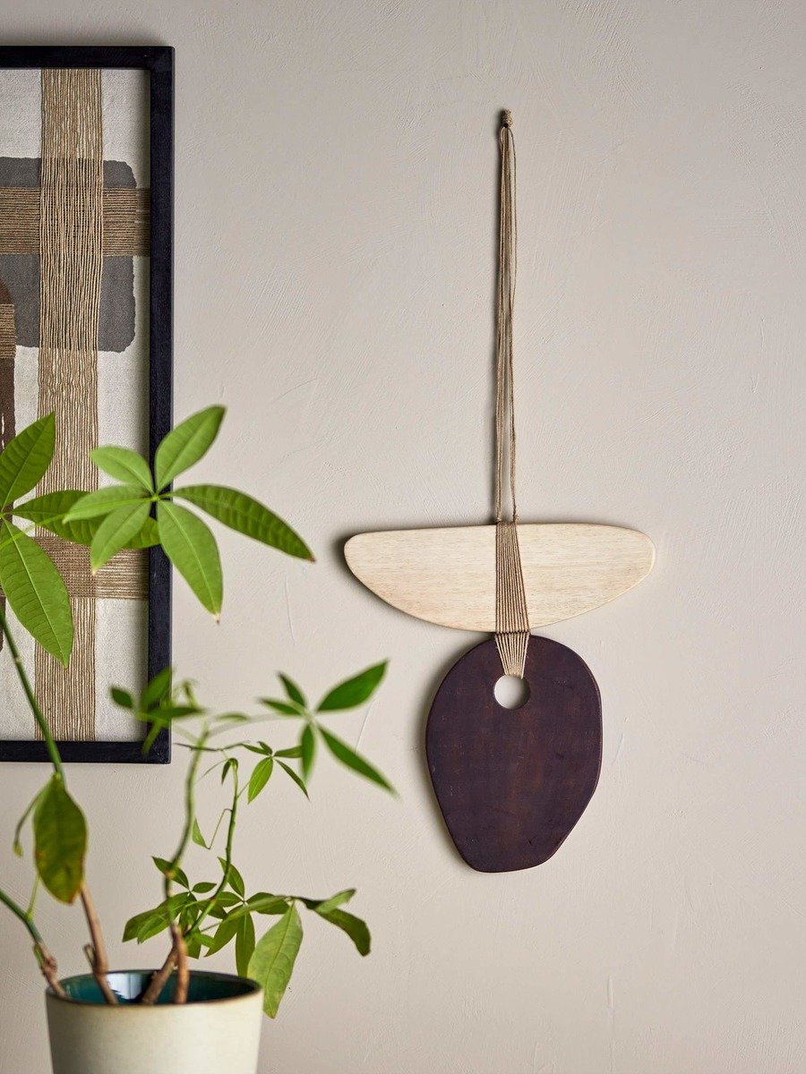 דקורציית תלייה לקיר, אלמנט עיצובי בסטייל אותנטי ייחודי עשוי עץ אלון ועץ מנגו בשילוב חבל יוטה עדין.