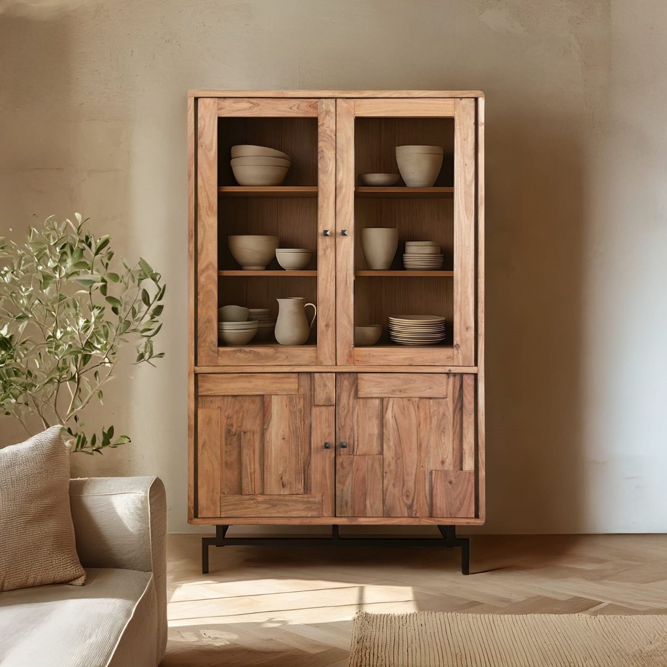 ויטרינה עץ בסגנון וינטאג' כפרי בעיצוב מרשים במיוחד, שילוב מדהים של עץ וזכוכית!