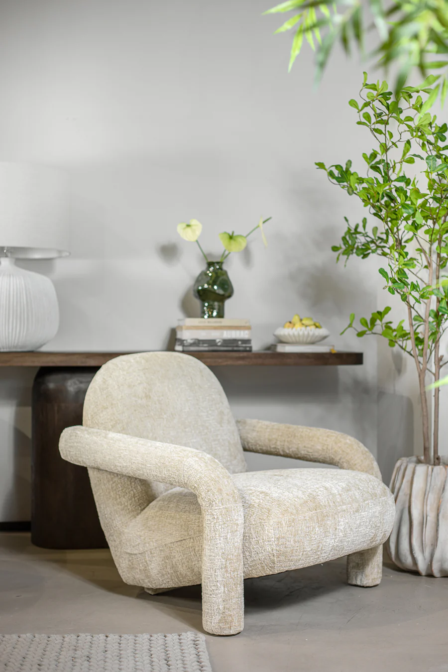 כורסא מדהימה בעיצוב טרנדי ופרופיל מעוגל על בסיס רגלי עץ נסתרות.