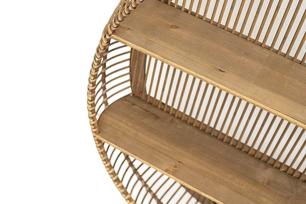 הכניסו חמימות וסטייל לבית בעזרת מדף דקורטיבי לקיר. המדף עגול משלב בין מסגרת ראטן קלועה בעבודת יד לבין מדפי עץ יציבים.