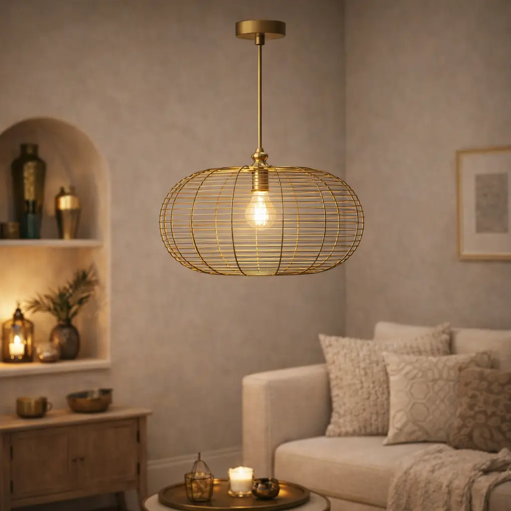 גוף תאורה מעוצב עשוי פסי ברזל בגוון פליז מוברש!