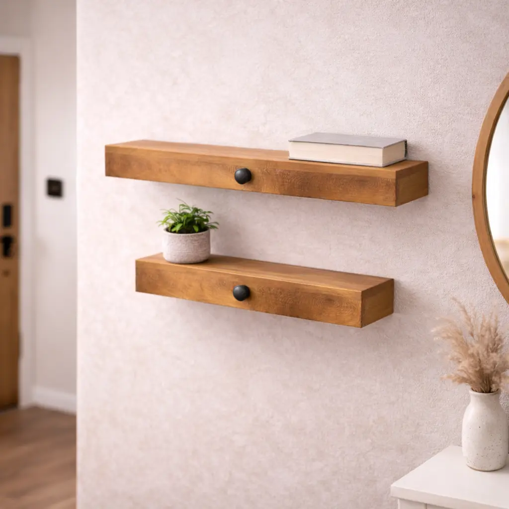 סט מדפי מגירה צפים עשויים עץ מנגו טבעי!