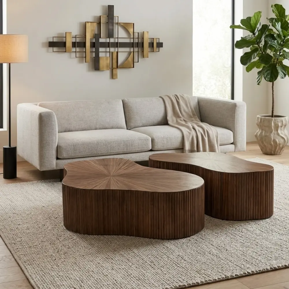 שולחנות מעוצבים בקווים רכים ובגימור מוקפד המדגיש את הטקסטורה הייחודית של העץ, ויוצרים שילוב מושלם בין חמימות טבעית לעיצוב אלגנטי.