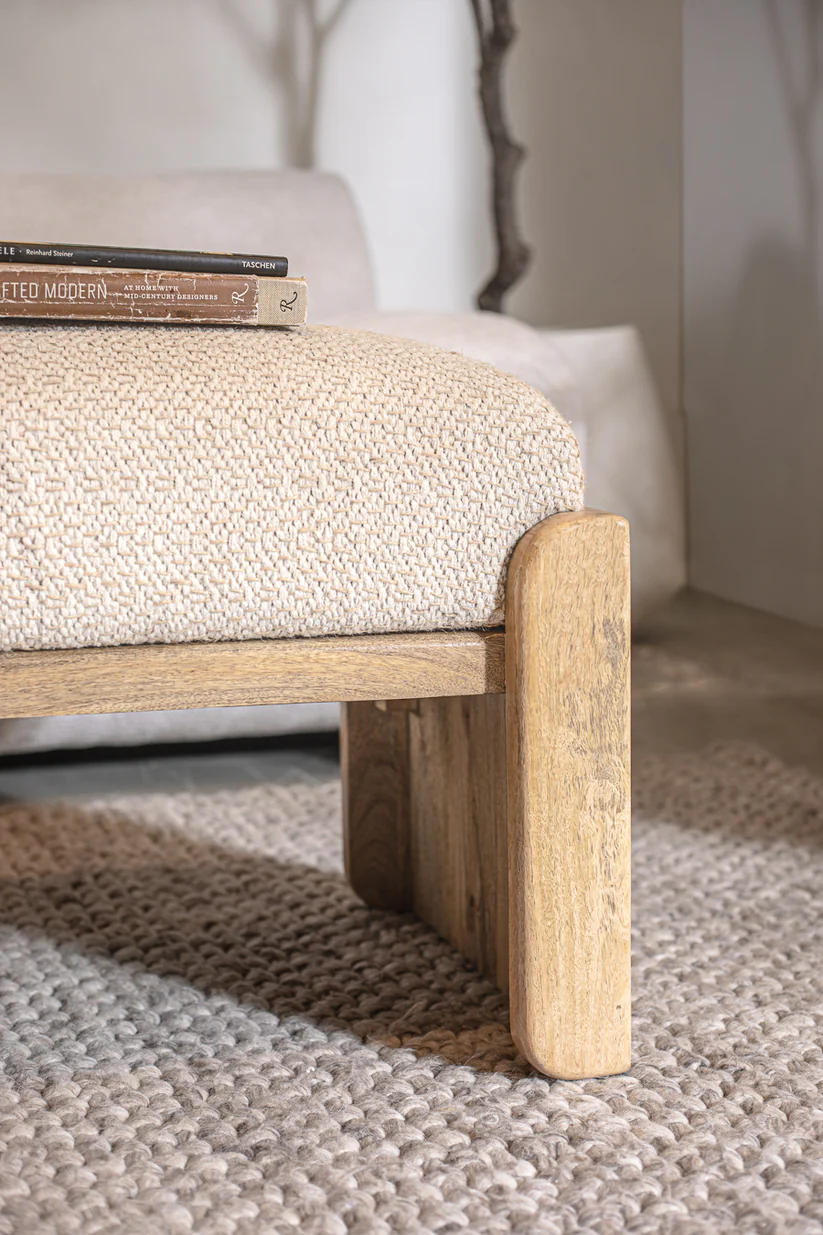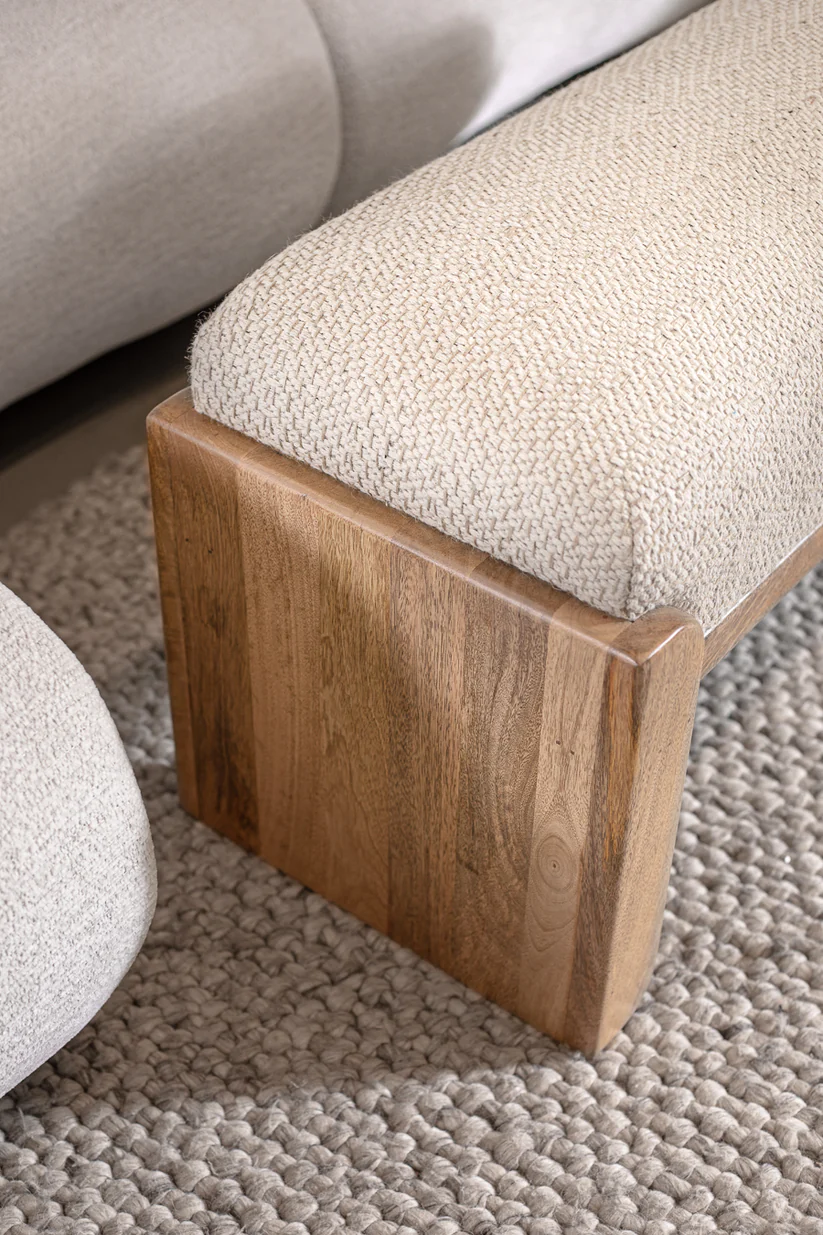ספסל דו מושבי עשוי עץ מנגו טבעי ומרופד בד רך ונעים למגע, מושלם לריהוט כמקום ישיבה נוסף לחלל המגורים, חדר הילדים או חדרי המתנה!
