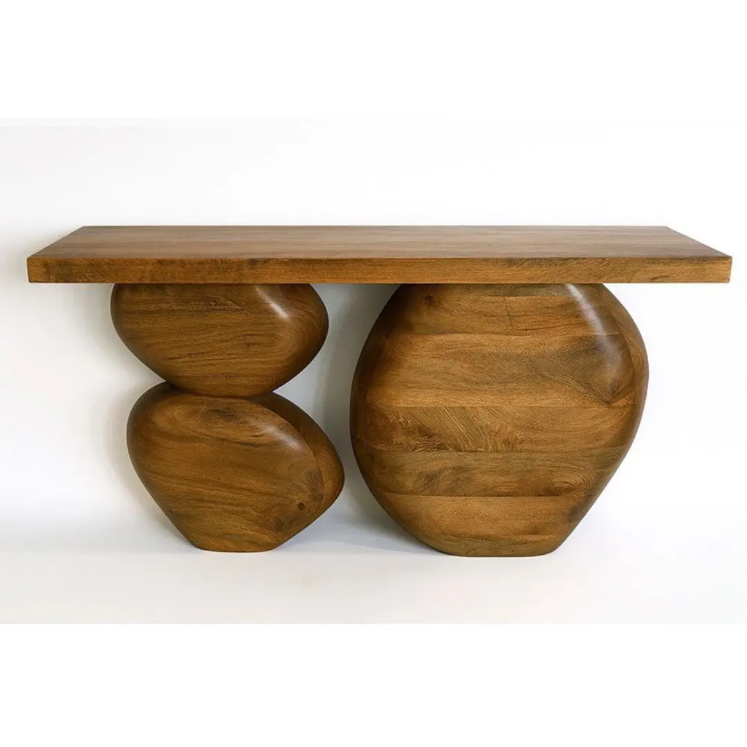 קונסולה בוצ'ר עץ מנגו טבעי על רגלי פיל ענקיות בדיגום טבעי וחלקלק, קונסולה מרשימה בסגנון מודרני כפרי עם אופי ייחודי לחלל הבית שלך.