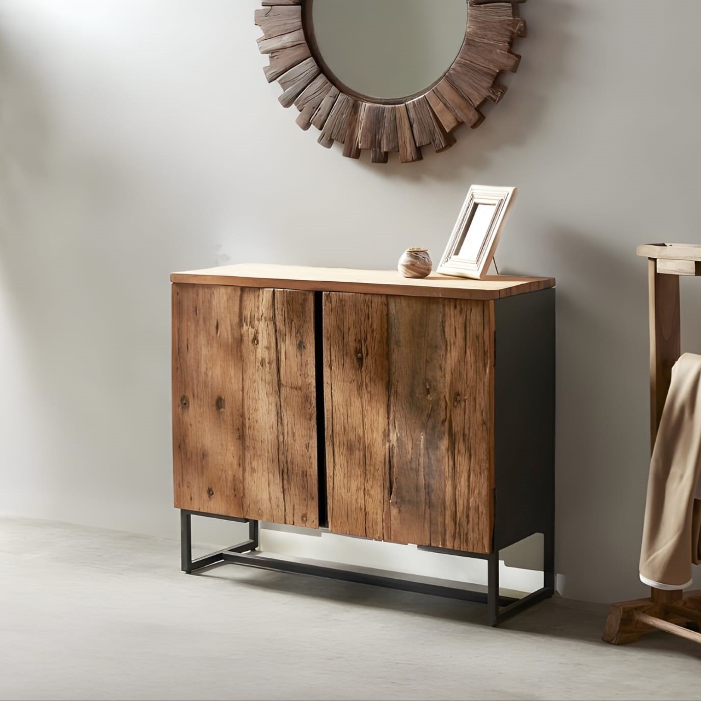 שידה מדהימה לכניסה או חדר השינה, 2 דלתות ארון עשויה עץ מנגו ממוחזר בשילוב מתכת בצבע שחור!